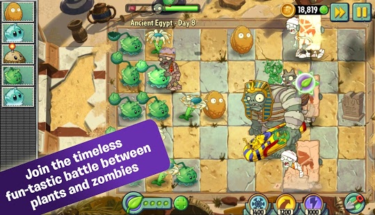 Sammle legendäre Rasen-Recken wie Sonnenblume und Erbsenkanone sowie Hunderte weitere Gartenkrieger wie die wild blühende Lava-Guave oder die Laserbohne. Wage einen Untotentanz mit durchgeknallten Zombies, die an jeder Ecke auf dich lauern – Jetpack-Zombie, Meerjungfrau-Wicht, sogar hohldrehende Zombie-Hühner haben es auf dein Oberstübchen abgesehen!